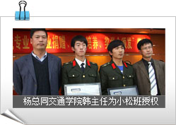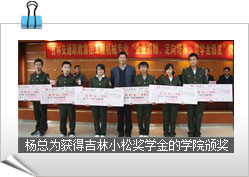 楊燁煬董事長為工程機械系10307、10308班冠名“吉林小松2010(1)班”、 “吉林小松2010(2)班”并授牌,同時,為2009-2010學年獲得“吉林小松獎學金”的獲獎學生頒發獎金和突出貢獻獎!